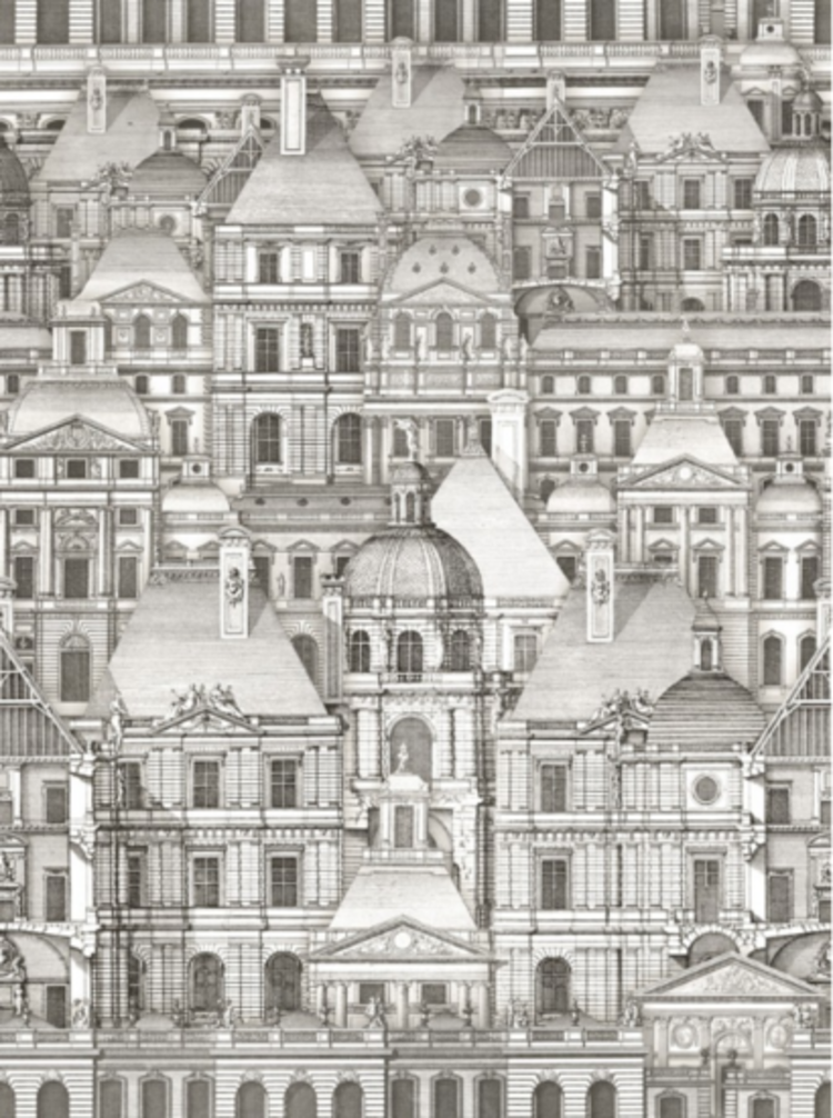 Mind the Gap Louvre wallpaper immediately gives a statement to your interior. This wallpaper shows a collage of French baroque architectural elements.