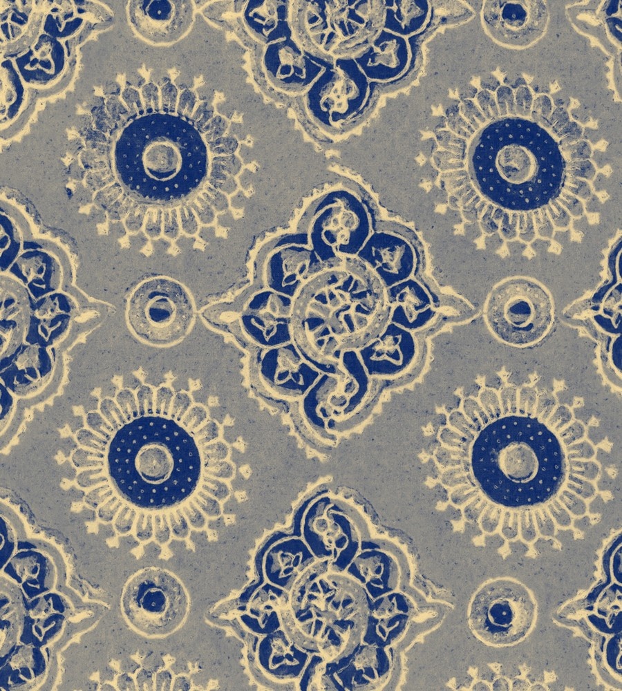 Madder is an authentic Gujarat style pattern created with wood block printing natural dyes. An ancient design showing repetitive handmade geometric motifs combined with elements which symbolise nature.
