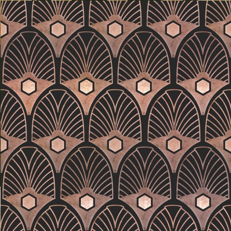 A splendid piece from our Metropolis collection, with repetitive pattern in copper shades on a black background.