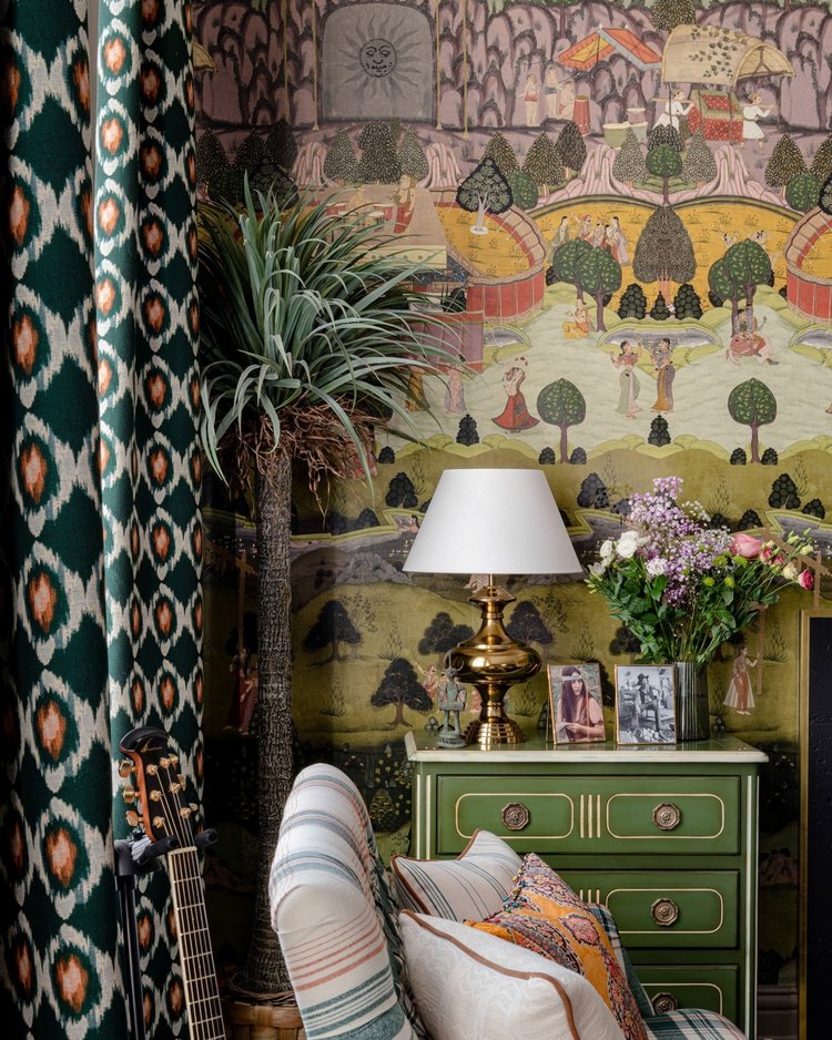 The sound of music echoes in the valley as lovers embrace and crowds dance in unison, amid gardens full of trees and manicured shrubs. Festival-goers swim and immerse themselves in nature, while melodies float through the air in our PEACE AND MUSIC print. Fine details show an environment that is calm and full of happiness, where music acts as a universal language that brings everyone together as one. As your eyes wander through the gardens, the sound of laughter and conversation fills your mind and transports you to the festival itself, where time stands still and the present moment is all that matters.