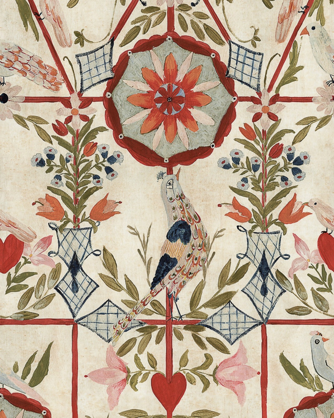 The Bird House is a wallpaper that is inspired by the cabbage-like feeling of an aviary. This Mind the Gap wallcovering from the Tyrol Apres-Ski collection has a charming pattern full of swirled flowers, leaf garlands and traditional Tyrolean birds. A vintage wallpaper that is perfect for a timeless, atmospheric and poetic interior.