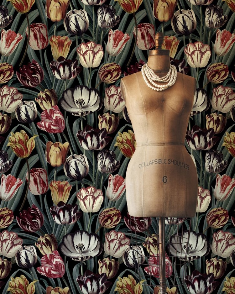 A spectacular wallpaper with beautiful hand painted tulips, in vivid colors.