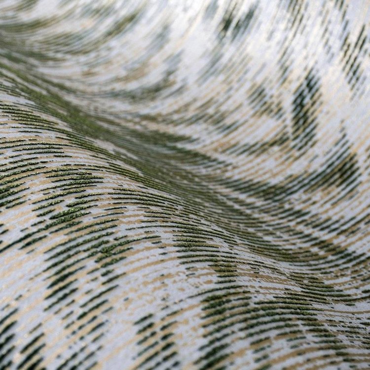 Printed wallcovering with flock. The wallpaper resembles the beautiful coat of the Blushing Sloth (Sloth ) , who lived so quietly and quietly that algae could grow on the outer layers of his fur, giving the animals a breathtaking glow.