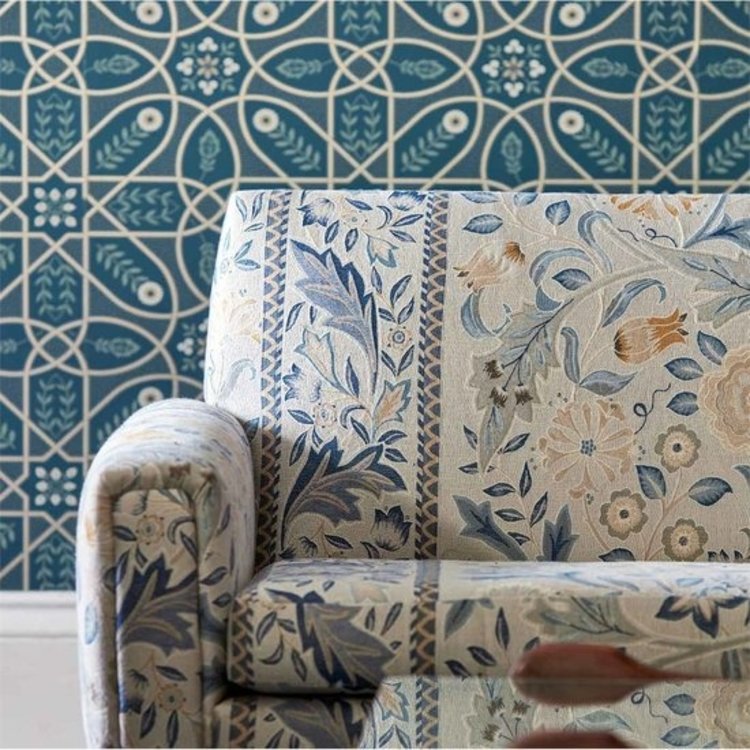 Morris Co.'s Brophy Trellis Wallpaper is a beautiful wallpaper. The design comes from the Morris & Co. archive and was originally a ceiling paper designed by Andrew Brophy (1844-1912), an arts and crafts designer. The trellis structure has been simulated and flowers and leaves from one of May Morris's original designs have been added. This makes Brophy Trellis a beautiful design that goes well with other Morris & Co fabrics and wallpaper