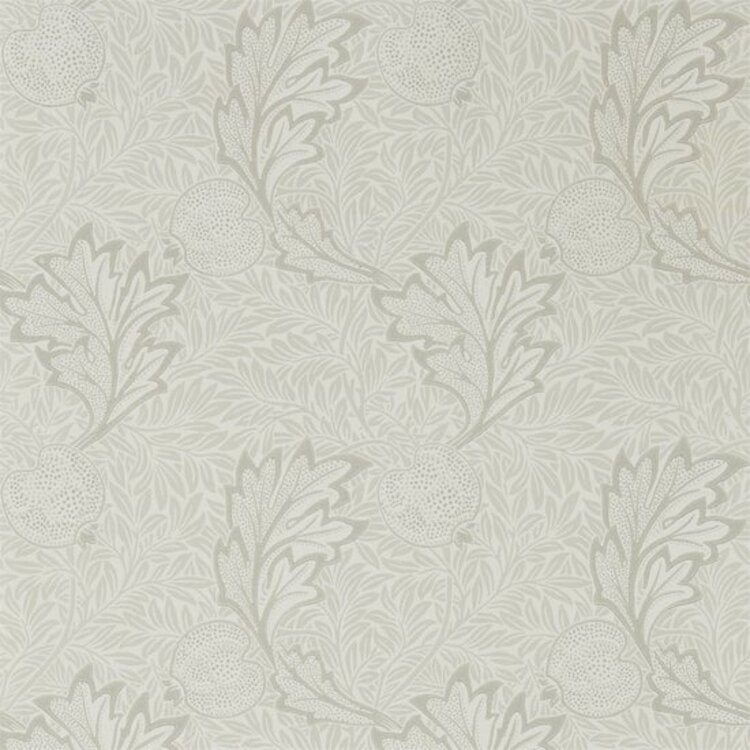 Apple Wallpaper from Morris Co. is made of acanthus leaves and iridescent fruits. Created by William Morris in 1877, this iconic wallpaper was originally used on the walls of May Morris's office at her home in Hammersmith. The contrasting edge finish draws attention to the refined details. Signed and reprinted in a new color scheme.