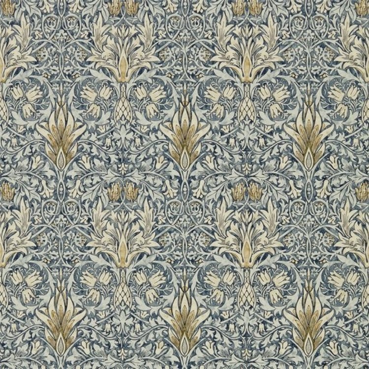 Snakeshead is a wallpaper that is inspired by the heads of snakes. This Morris & Co wallcovering shows organic shapes along with an exotic touch. A botanical wallpaper that is perfect for an airy, timeless and luxurious interior.