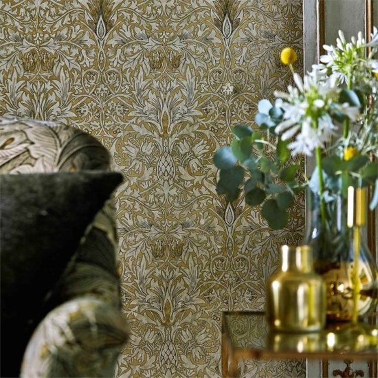 Snakeshead is a wallpaper that is inspired by the heads of snakes. This Morris & Co wallcovering shows organic shapes along with an exotic touch. A botanical wallpaper that is perfect for an airy, timeless and luxurious interior.