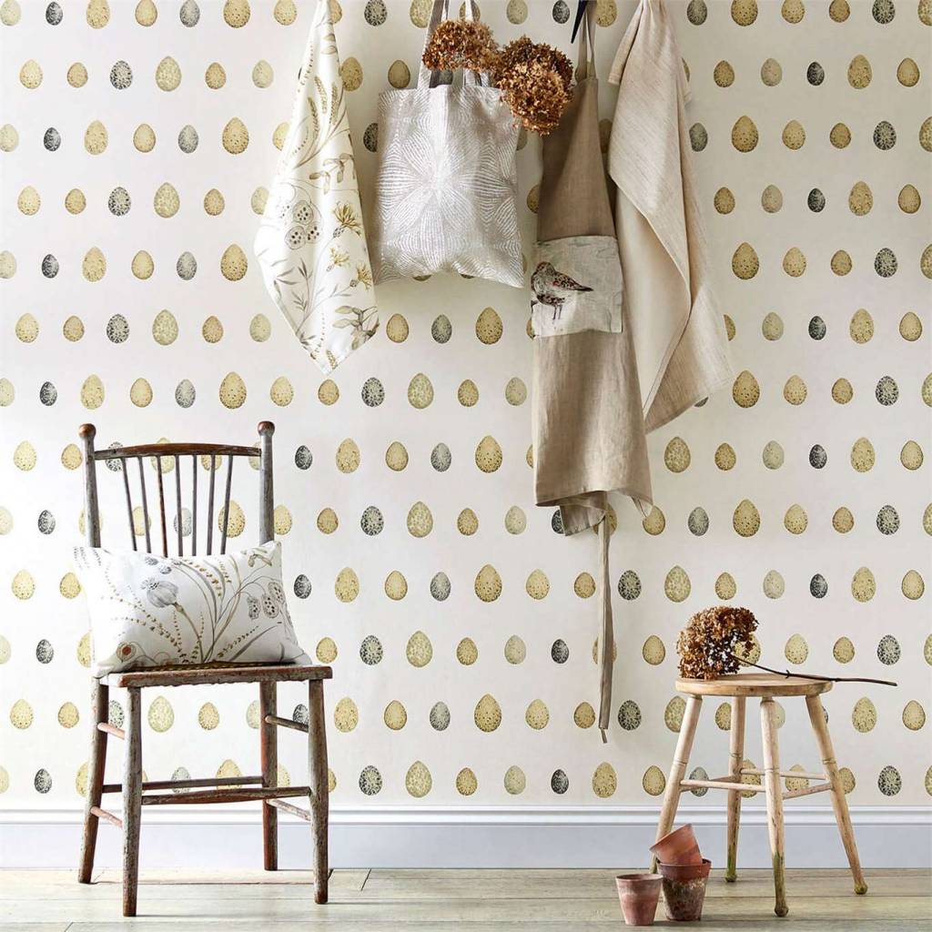Part of the Embleton Bay Wallpaper collection and originally painted in watercolour these charming mottled eggs of robins tree swallows blackbirds and crossbills nest together in a neutral palette.
