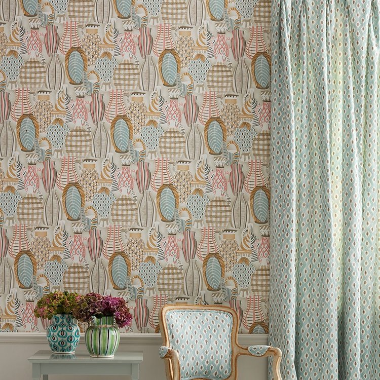 An arrangement if colourful hand-painted pots named after the Mediterranean coastal town in the Pyrénées-Orientales where Matisse often worked. Nina says 'I love the Collioure print featuring decorative pots, it's like stepping into one of Matisse's still-lifes.'