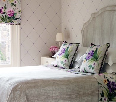 A diamond trellis design with a cool color star stud. Shown in gold on taupe. Other colors are available. Request sample for real color agreement.
