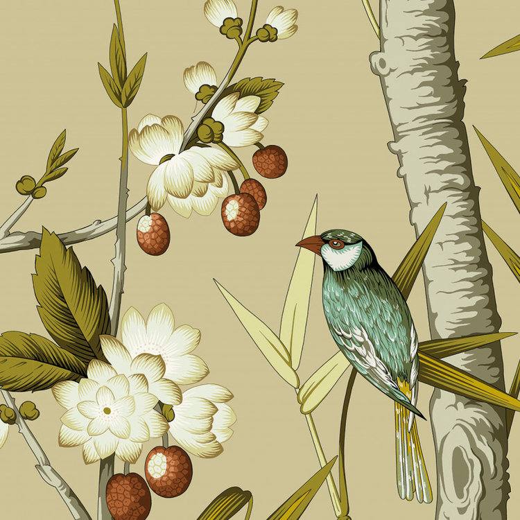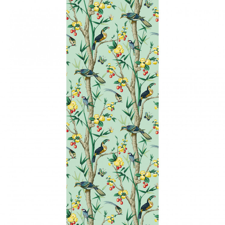 With Joséphine, Nobilis revisits a large classic wallpaper design, offering bold and contemporary colors, printed on Japanese straw. Birds with colorful plumages rest in the shade of bamboo and a tree with flowers and exotic fruits. A roll is made up of 2 strips of 70 cm x 340 cm, i.e. a complete panorama of 140 cm x 340 cm.