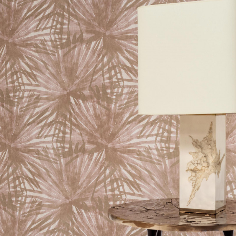 Palm wallpaper has a metallic and matte vinyl design with palm leaves that play with shadow and light. This wallpaper is delicate due to its soft and natural tones.
