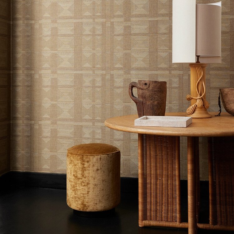 The playfully woven jacquard texture of the Kubu wallcovering resembles an inlaid rope pattern and creates a vibrant relief on the walls.