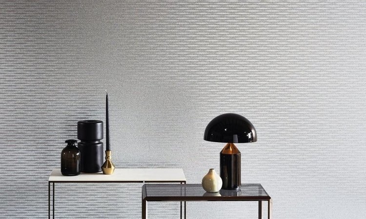 Add glamor to your interior with the Omexco Graphite mica wallpaper. This wallpaper has a background of metallic foil covered with stripes of mica, which run from and towards each other.