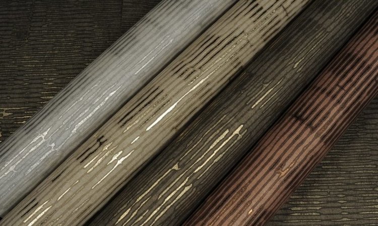 The luxurious wallpaper Omexco Cobra has an irregular stripe pattern derived from reptiles, in luxurious metallic colours.
