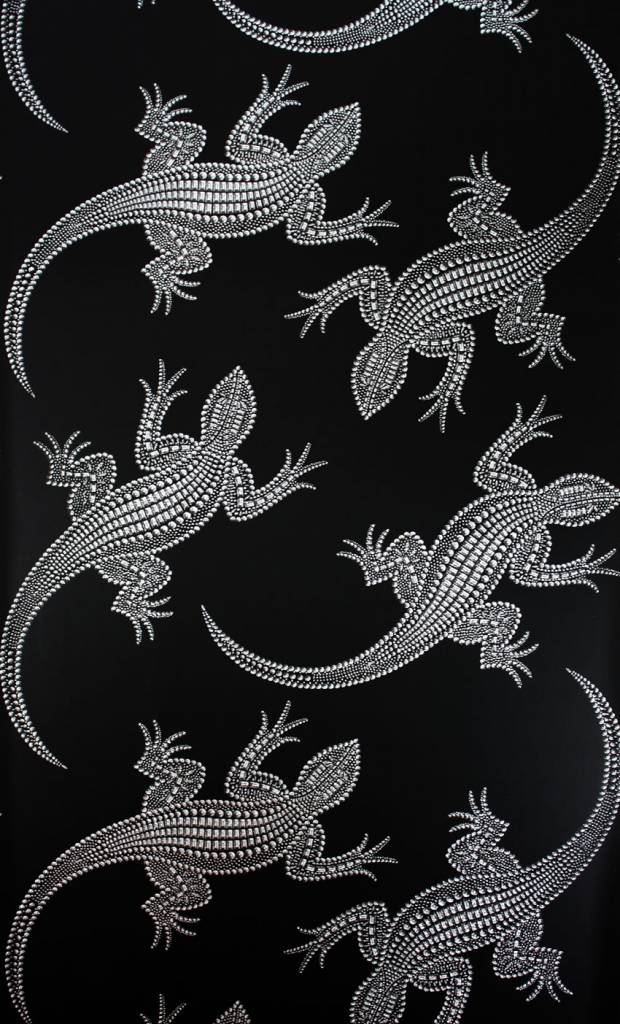 Komodo wallpaper design An exotic lizard printed on holographic foil with a glittering jewel inlaid effect.