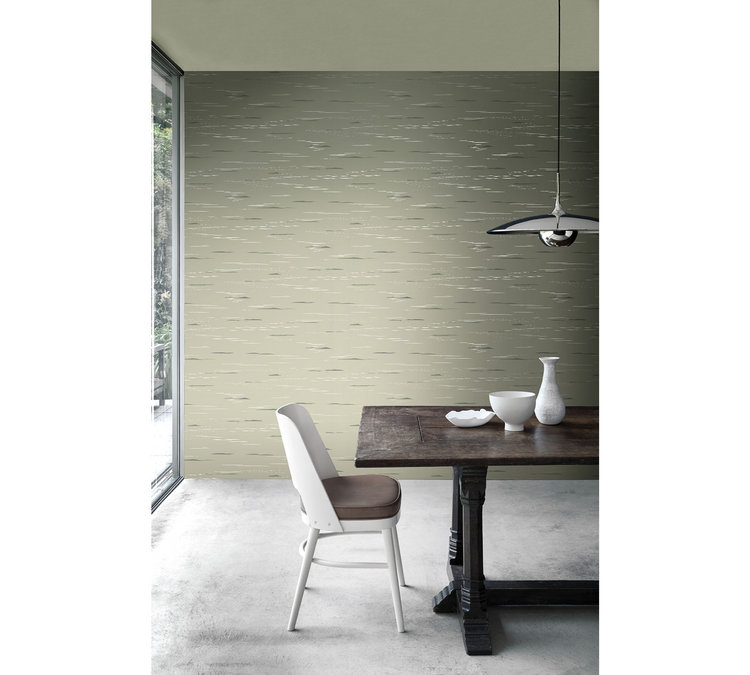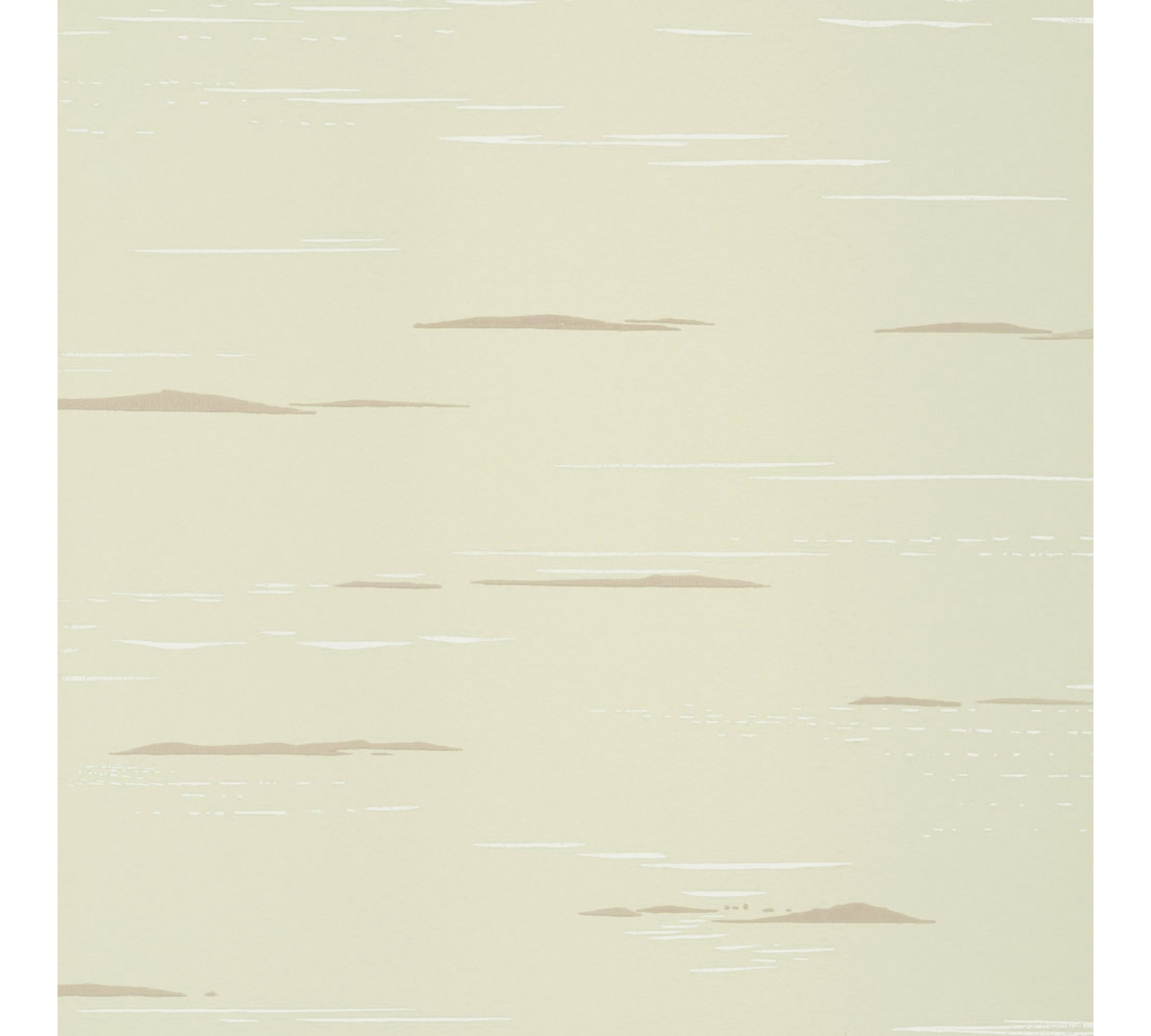 With its traditional print, this contemporary, abstract design with island silhouettes surrounded by calmly rippling water adds a wonderfully serene element to the collection. Illusion and reflection have been used here to create a design that enhances the sense of side space, making a room feel more spacious. Originally a watercolor, this classic all-over paper is printed in a collection of complementary shades. Glittering metals provide extra depth and a reflective quality that appears differently depending on the light in the room. A simple, minimal design that evokes a sense of calm and tranquility.