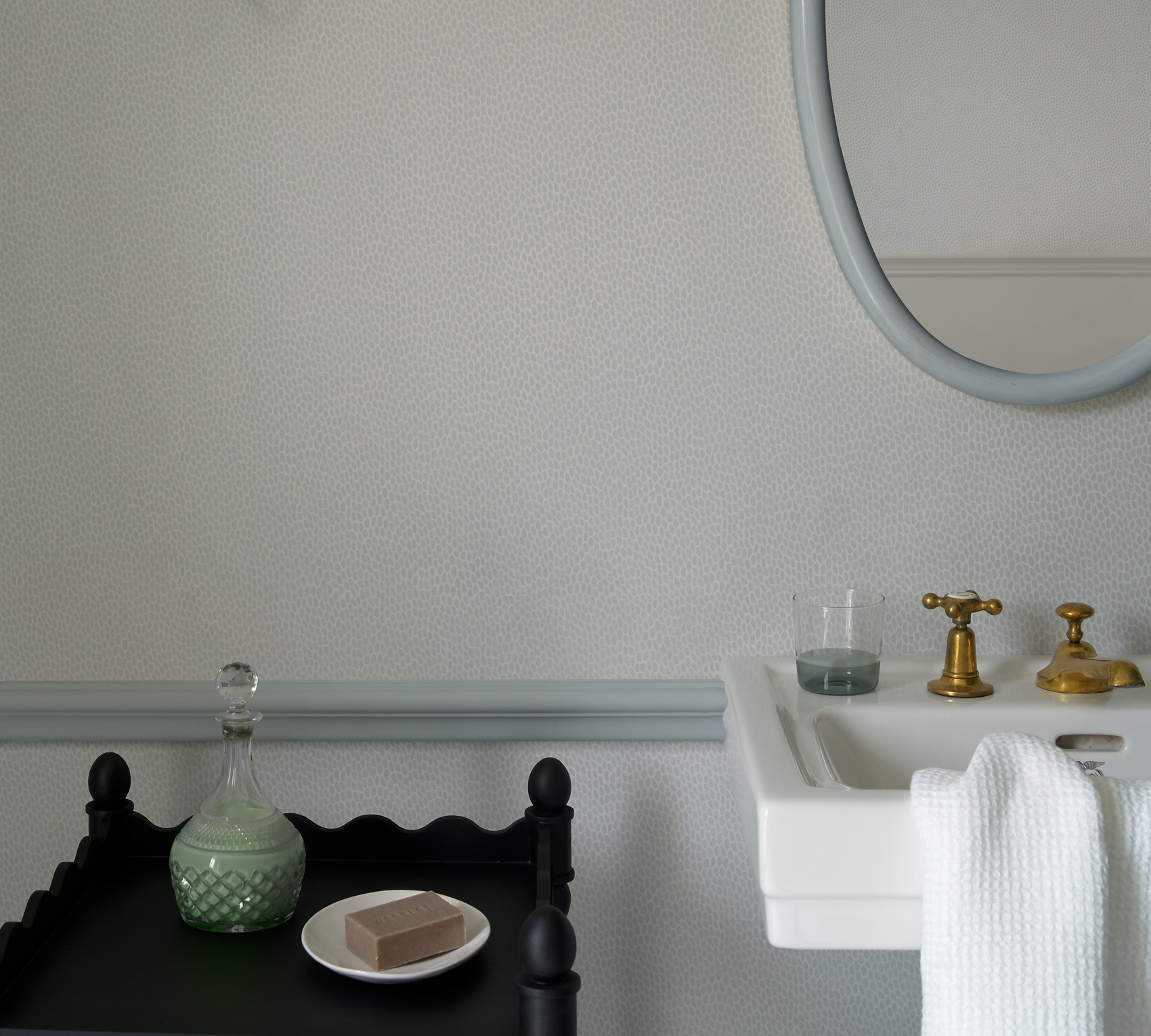 A small-scale, all-over motif that refers to the seed pods of the Indian lotus flower. The artwork has evolved from simple chalk markings of seed pods to a delicate surface print. This versatile wallpaper makes an ideal backdrop for artwork and furniture; the simplicity of the design, the organic shape and the surface printing combine to create a soft, textural finish.