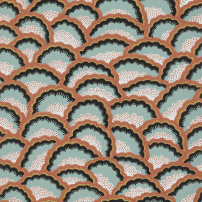 Timeless pattern with refined colours and printed using a traditional printing technique with a hand-painted effect, ARLESIENNE from the archives of Maison Pierre Frey recalls the quilted petticoats of Arles city.