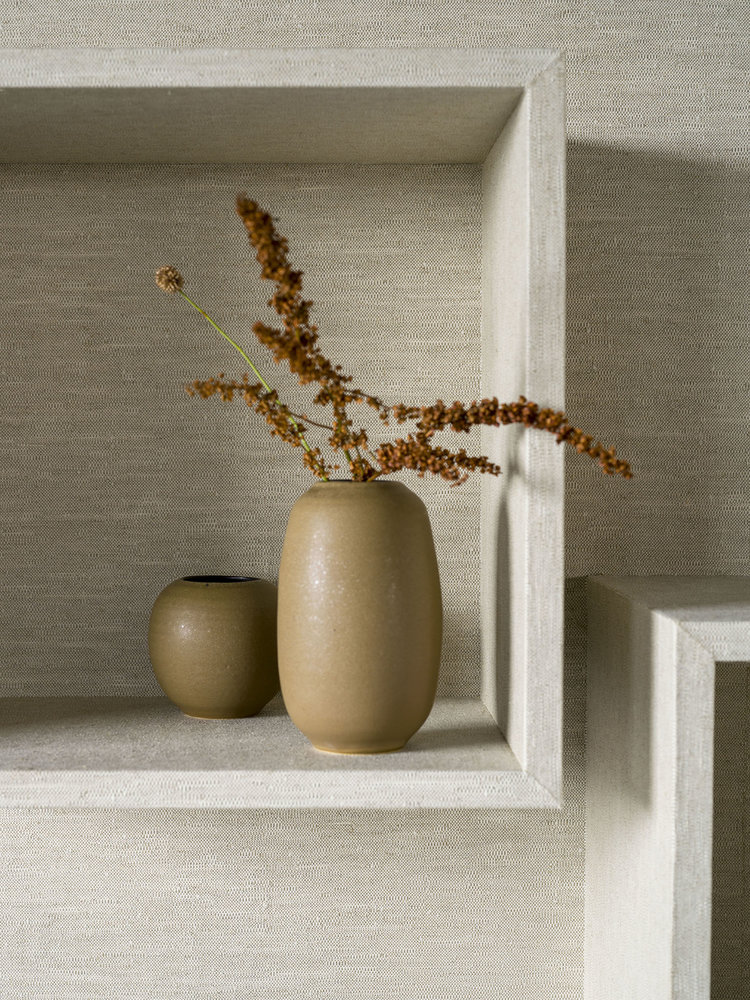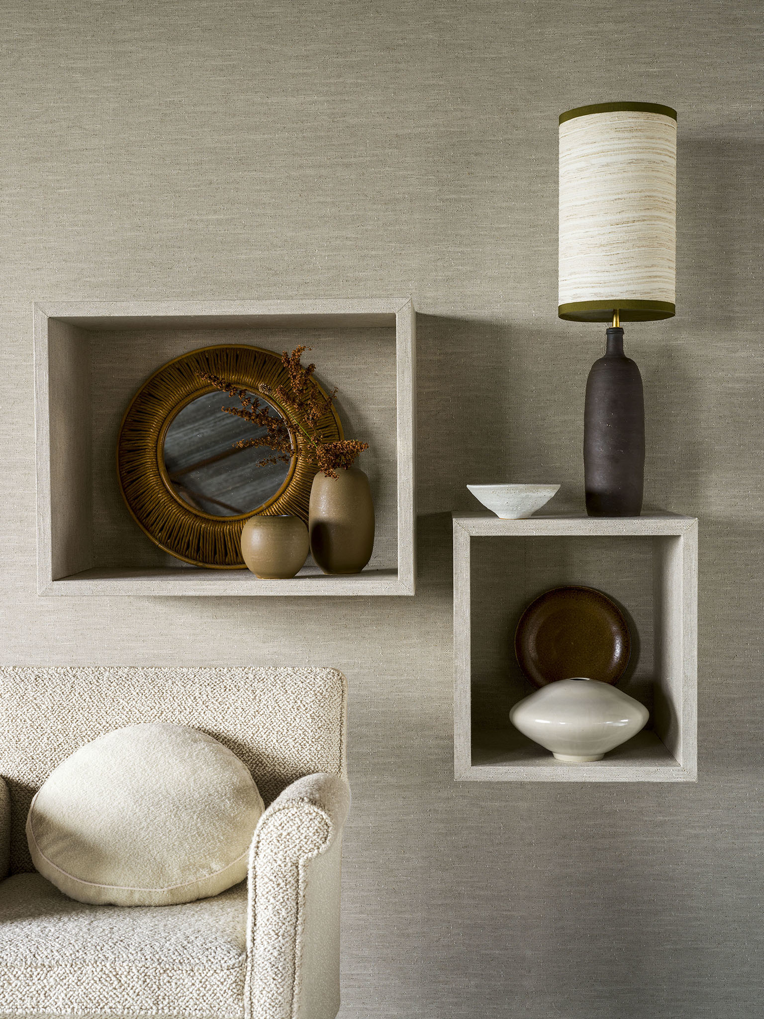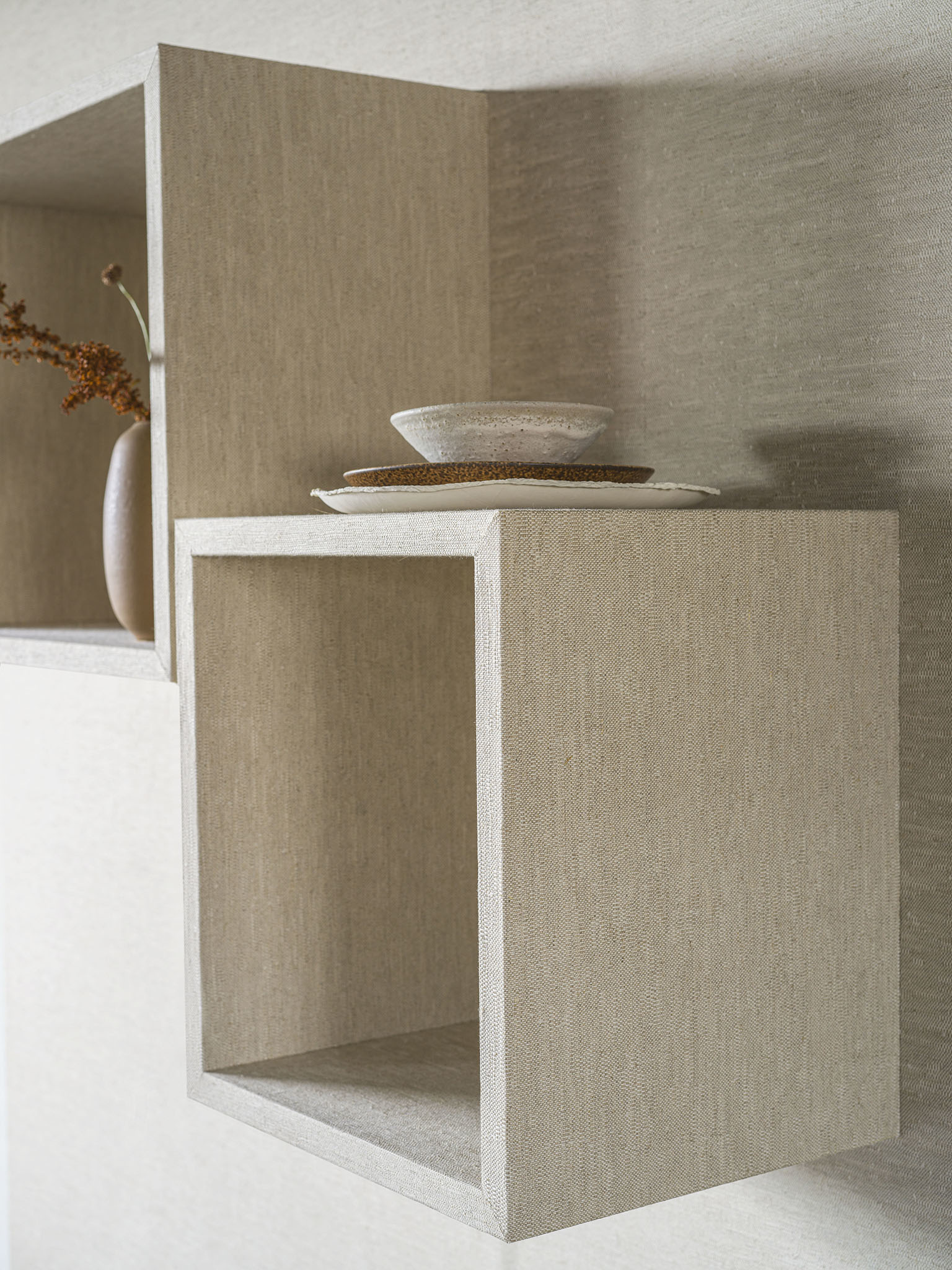 The interweaving of linen and organic cotton threads gives this wallcovering the appearance of a raw texture inspired by traditional weaving.