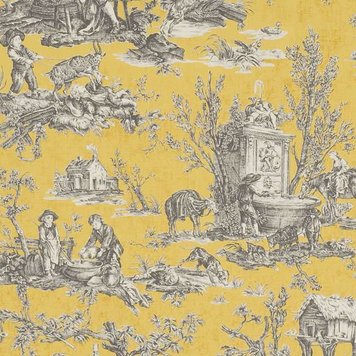 Design by Jean Batiste Huet. "L'abreuvoir" (drinking trough) toile de jouy printed in 1792 at the Oberkampf de Jouy factory in Josas.