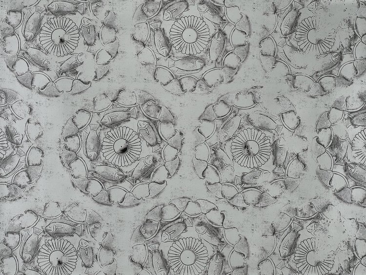 This wallpaper is inspired by a golden cup offered by Thutmosis III to General Djéhouty, the king's trusted man in all foreign lands and in the mid-sea islands to thank him for his services. It shows a Nilotic scene composed of fish and lotus flowers. The metallic or matte 3D printing vividly captures the repoussé technique used by New Kingdom craftsmen to decorate metal cups. This work is kept in the Department of Egyptian Antiquities at the Louvre.