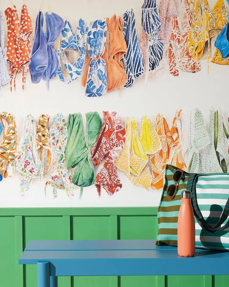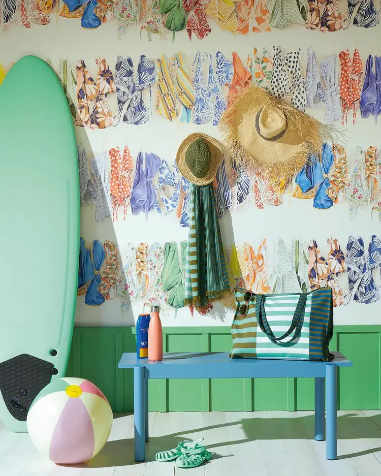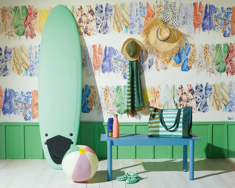 For the first time, Pierre Frey's ‘Les Dessins 7’ collection is designed around one theme, the coast. The colourful designs show underwater vegetation, shell collections, sunny beaches with palm trees, deckchair stripes and sun-dried swimming costumes transport us to distant shores. These beautiful and original illustrations, adorn any interior and make you long to escape to the beach.