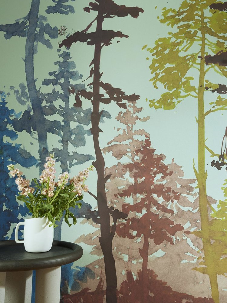 Majestic pine forest drawn in ink. Whatever the season, summer or fall, this panoramic takes us far from the chaos of the city. The printing on a non-woven support of very high quality allows to retranscribe all the nuances of the ink used by the artist.