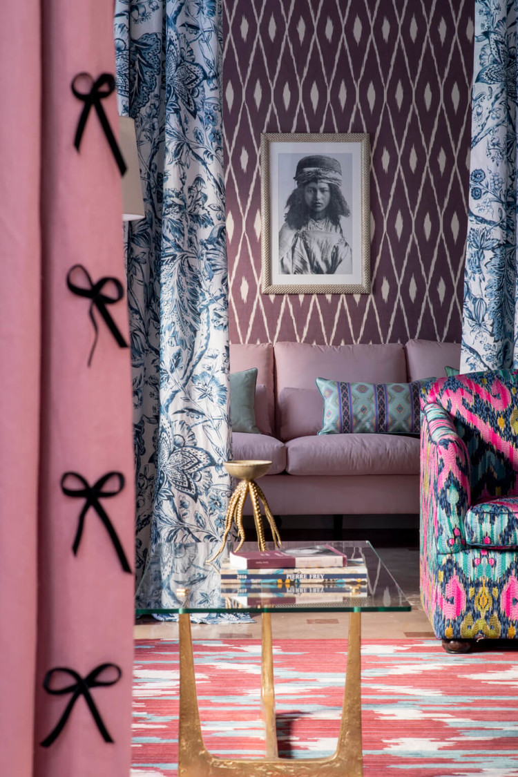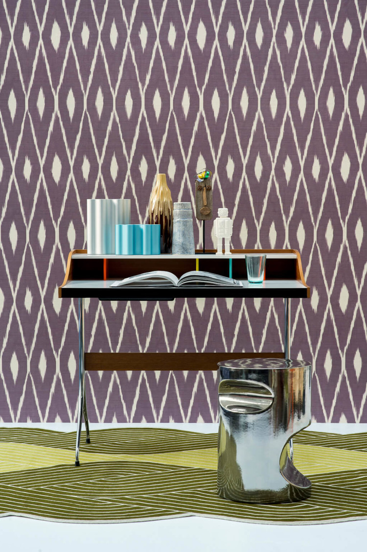 In the manner of a ikat, this two-tone geometric pattern lends a subtle blur effect to this wallcovering.