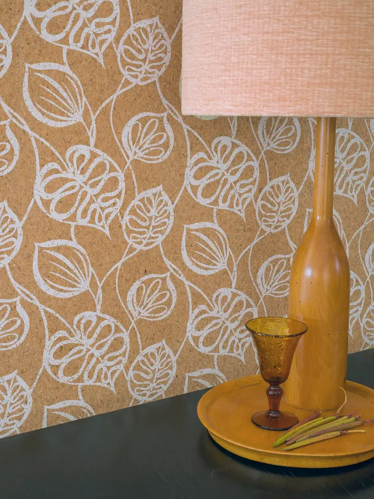 Manava is a wallpaper inspired by the Polynian flora. This wallcovering by Pierre Frey, from the Iles Enchantées collection, shows a beautiful design, made by traditional rotary printing, of leaves on cork. A beautiful wallpaper that is perfect for a natural look in your interior.