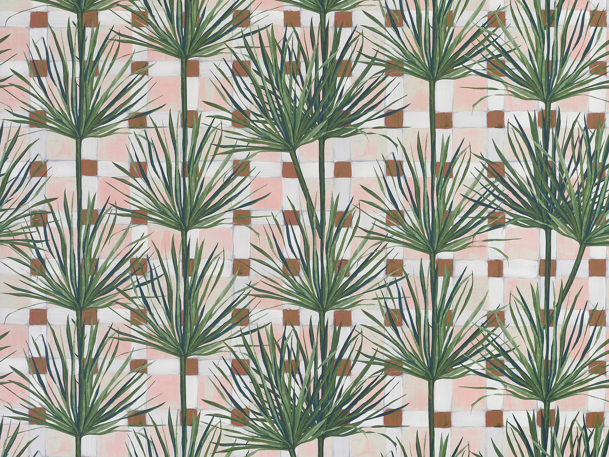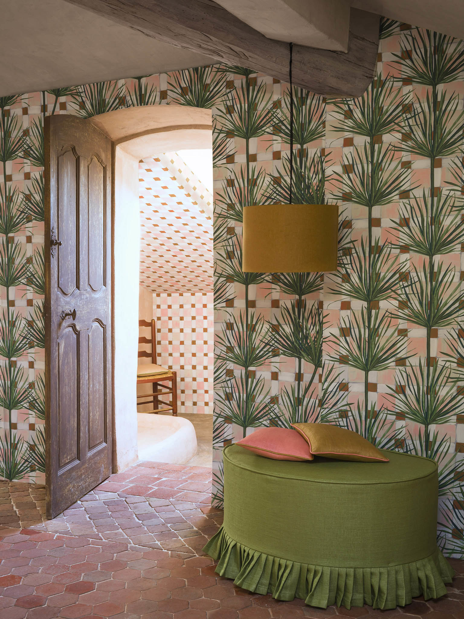 A delightful change of scenery with this sunny wall made of colored ceramic tiles and succulent plants hand-painted with gouache.