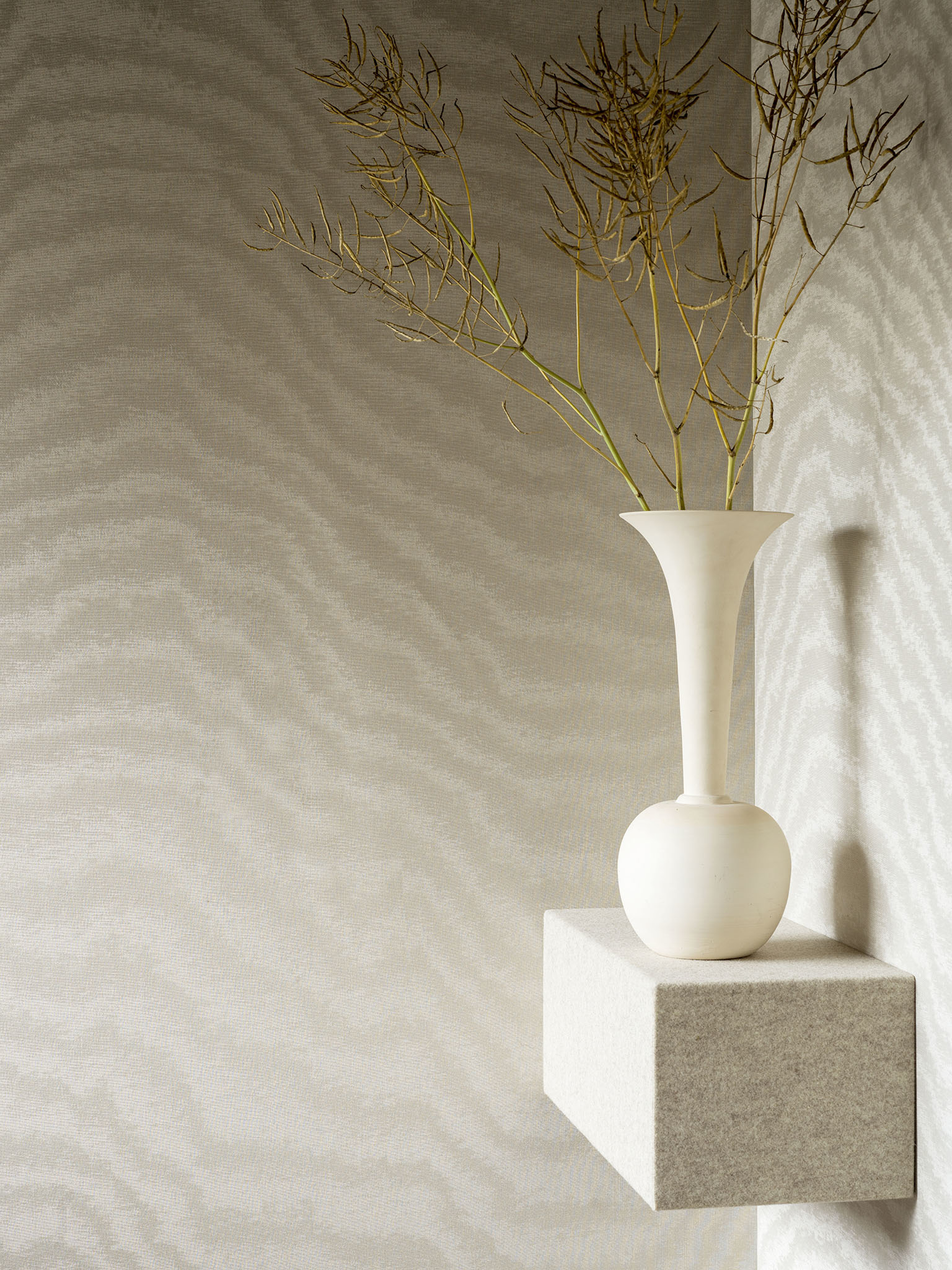 A classic and elegant fabric par excellence, this exceptional matt moiré is the result of a technique inherited from the 17th century. The partial crushing of the weft by calendering gives ripple effects by reflecting light on the crushed ribs. Laminated on non-woven fabric, this best-seller by Pierre Frey is now available as wallcovering in natural colours for easy installation.
