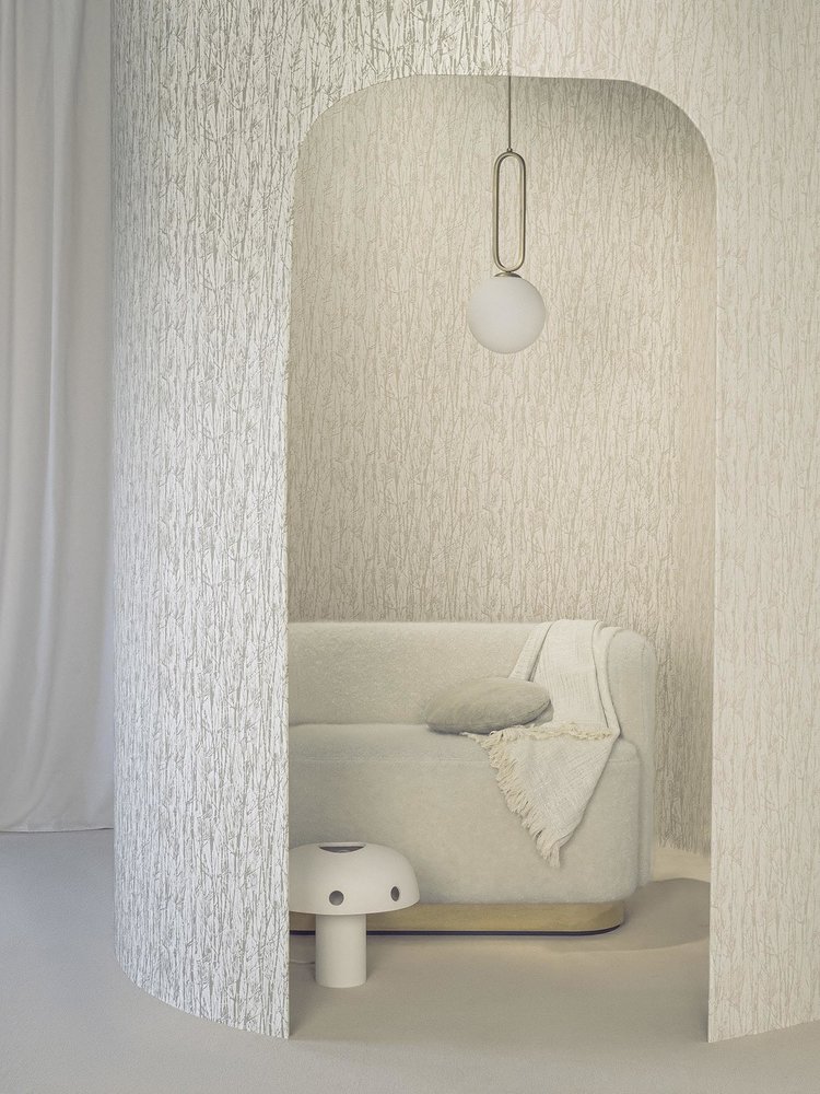 Sven is a wallpaper with a light drawing of an abstract representation of leaves and branches. This wallcovering by Pierre Frey from the Natecru Textures n°2 collection has a matt relief with a fibrous appearance full of metallic reflections. A natural wallpaper that is perfect for a calm, timeless and atmospheric interior.