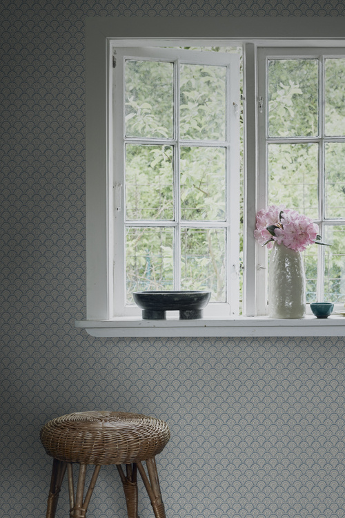 Beata wallpaper shows a subtle pattern with details of rural flowers in a shell motif. This wallcovering by Sandberg, from the Le Village collection, with the scallop shell, a symbol of the pilgrim. A subtle wallpaper that is perfect for a timeless and classic interior.