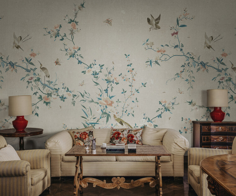 This collection by Sandberg is inspired by a fabric. An embroidered silk Chinoiserie, more than 100 years old, from Canton, China, that once made the long journey to France. The Chinoiserie brings the magic of the past back to life. The original owner of the fabric will forever remain a mystery, but the power of imagination knows no bounds.