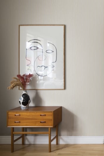 Brita is a wallpaper that breathes new life into striped wallpaper! This wallcovering by Sandberg from the Huset i Solen collection shows the strips, almost as if they were hand-painted. A graphic wallpaper that is perfect for a classic, timeless and atmospheric interior.