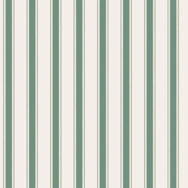 This design shows a classic narrow stripe with small elegant gold dots and is inspired by the beautiful silk curtains and furniture fabrics from the 18th century.
