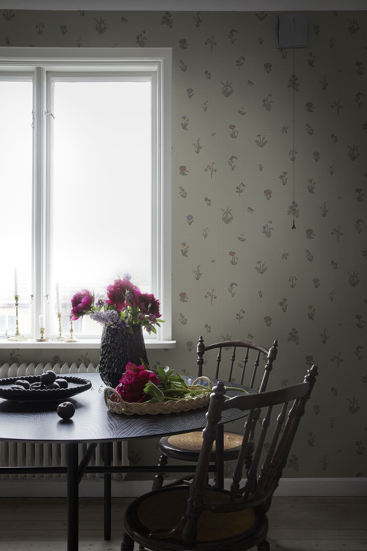 A house in the city. Classic Swedish flowers in a pleasant structure give the whole room the scent of graphic elegance from the 1940s. Design: Sara Bergqvist