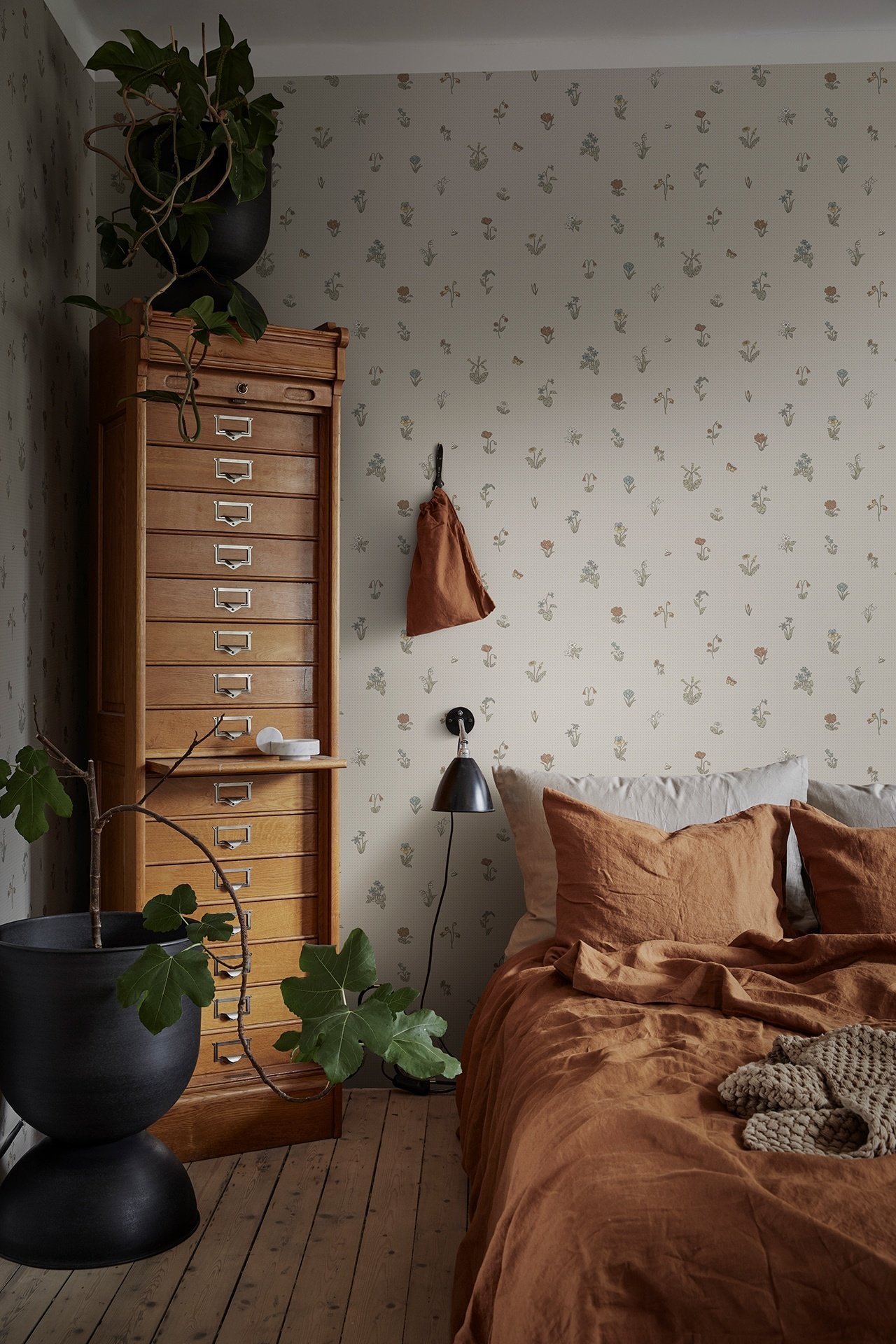 A house in the city. Classic Swedish flowers in a pleasant structure give the whole room the scent of graphic elegance from the 1940s. Design: Sara Bergqvist