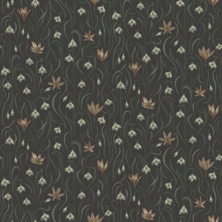 Signe is a wallpaper inspired by the flowers of early spring. This wallcovering by Sandberg from the Huset i Solen collection shows the snowflakes and the crocuses, in an almost Art Deco action manner. A graphic wallpaper that is perfect for a classic, timeless and atmospheric interior.