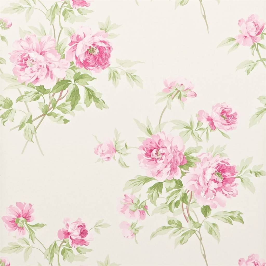 Adele is a faithful reproduction of a late 19th century French copper roller design. It has been re-engraved directly from the original fabric and portrays loose bouquets of peonies. This gravure printed wallpaper design retains the delicate transparency of the original with each bunch of flowers widely spaced giving this print a graceful and uncluttered feel.