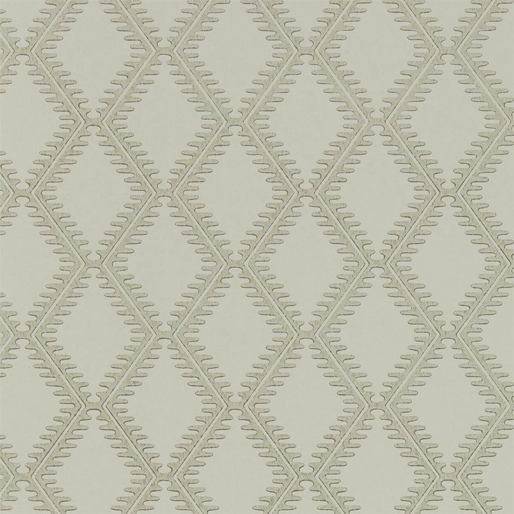Whites and metallics combine to create this contemporary geometric trellis with a block printed effect adding textural detail and authenticity to the designs chalky ground. Continue the story and team Witney with Witney Daisy wallpaper for use throughout the home.