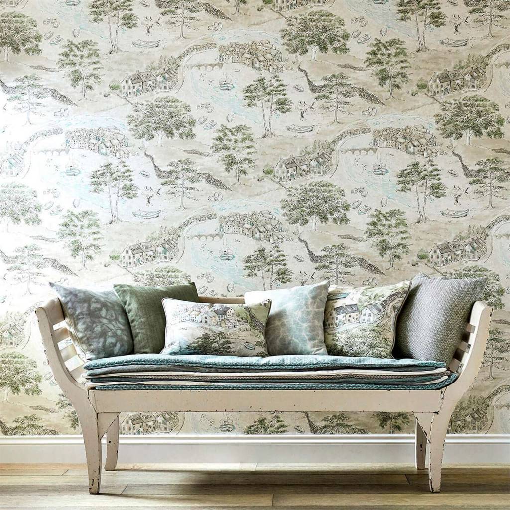 Meticulously designed for the Embleton Bay Wallpaper collection a story unfolds on a tranquil journey down winding lanes past country cottages gently meandering towards the sea.