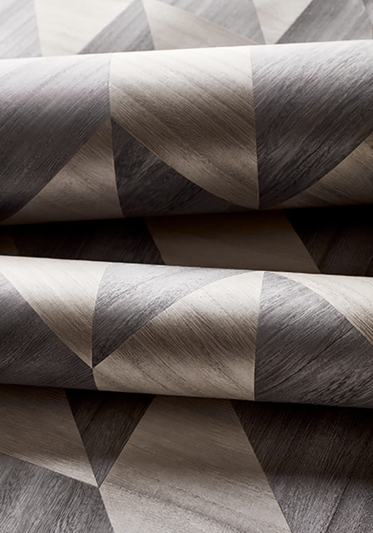 Real wood veneer has been cut and arranged by hand to form this refined diamond pattern on Thibaut's Paragon wallpaper. Each part has its own grain and the alternating tones give the pattern a lot of visual and textural depth.