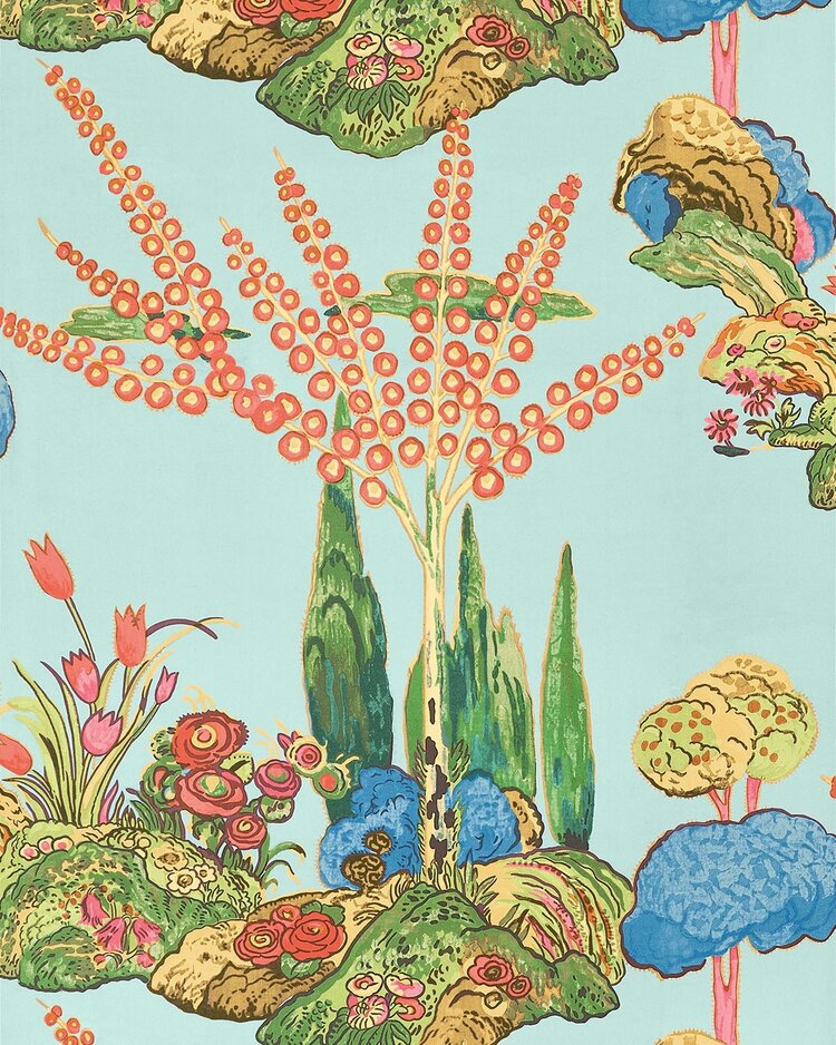 The luxurious wallpaper collection of the American brand Thibaut contains traditional and classic patterns as well as tropical and geometric prints.