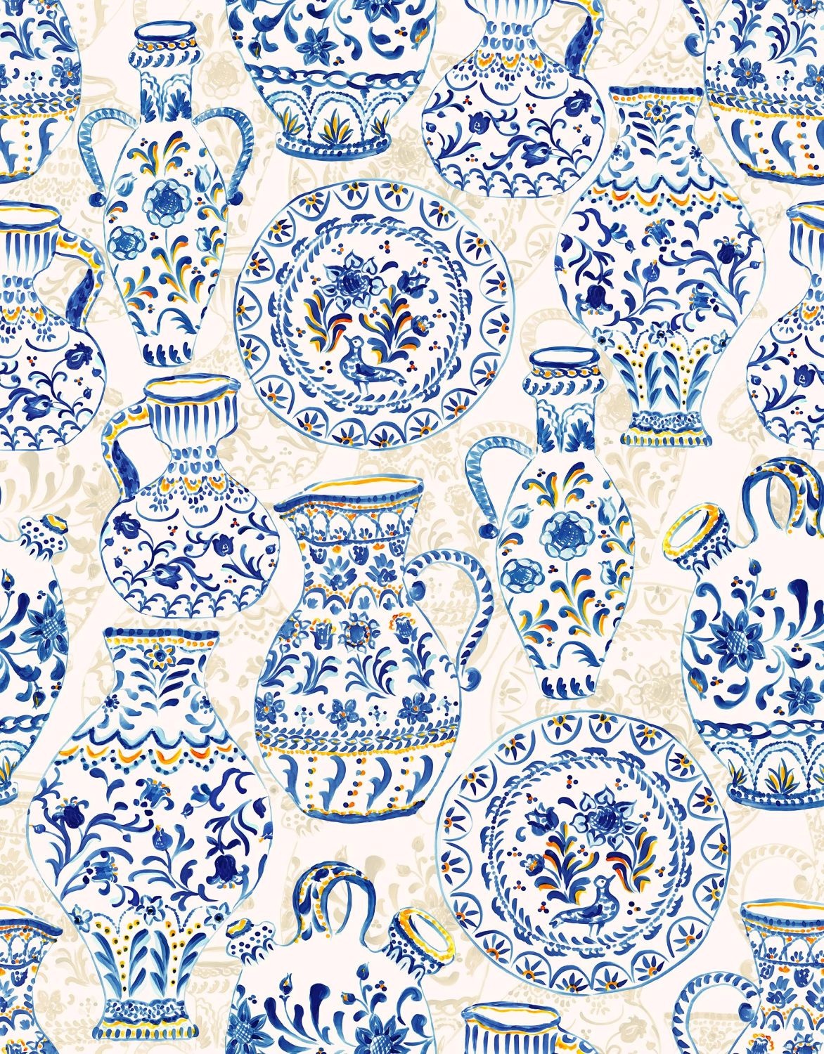 The Solera collection by Tres Tintas offers a colorful perspective on celebrations, delicious food, beautiful landscapes, and Spanish craftsmanship. It's full of joyful traditions that inspire you to enjoy life. It captures moments that matter more than time itself – it’s all about what you feel and experience. This wallpaper fits perfectly in interiors with a bohemian, Mediterranean, or vintage style, or as a striking statement wall in a modern home. It truly shines in warm, vibrant spaces such as the kitchen, dining room, or hallway.