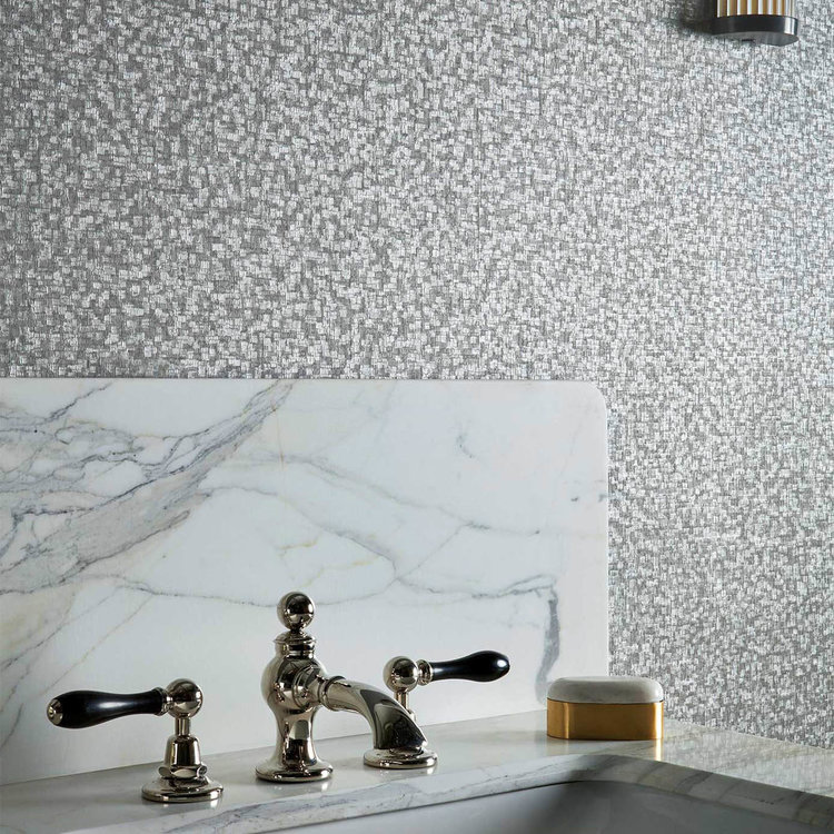 An iconic Zoffany wallpaper design with a real three-dimensional quality this micro mosaic exhibits a wonderful depth and movement. Decadent and imaginative Mosaic creates a glamourous tactile display across its 10 striking colourways. Available in 10 colourways: Gargoyle Olivine Old Gold Fossil Stone Silver Zinc Paris Grey Taylors Grey and Pale Silver