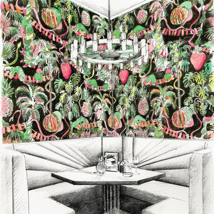 Carefully making its way across a game of metaphorical snakes and ladders, pangolin mothers desperately clamber across a perilous terrain of rickety bridges. Dicing with the precarities of life, the next generation scrambles to cling on as giant floating fruits disguise the subversive tone of a carnivalesque atmosphere. One of the most illegally trafficked animals of the past decade, the IUCN (International Union for Conservation of Nature) has listed all eight species of pangolin under the threat of extinction.
