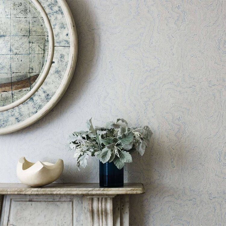 Suminagashi wallpaper which translates as floating ink is inspired by an original document from the Zoffany archive. This pattern of natural ripples of water is representative of the ancient Japanese art of marbling plain paper with water and ink.