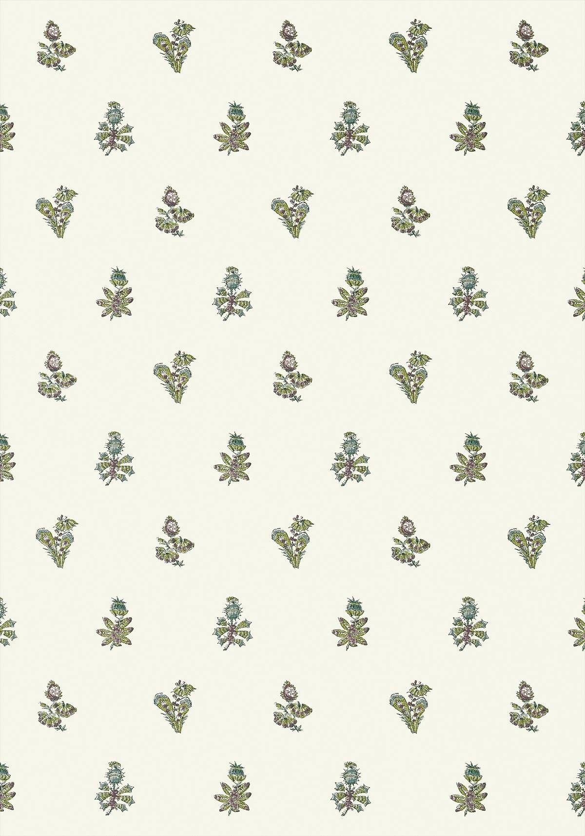 House Wallpaper uit de Anna French Collection toont een botanisch voorbeeld op beperkte schaal, met stekelige bladeren en doornachtige bloesems.